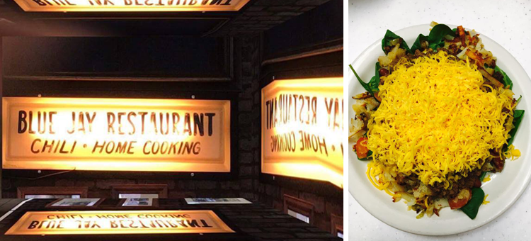 Wife and husband duo Danny and Tina Petropoulos opened this restaurant in 1967. Since then, not much has changed — thankfully. The mouthwatering family recipes, comforting interior and old-school atmosphere set Blue Jay apart. Start your day off with a Jacob Special (hash browns loaded with chili and cheese). The flavorful, chunky and juicy chili is sure to carry you through the day.
