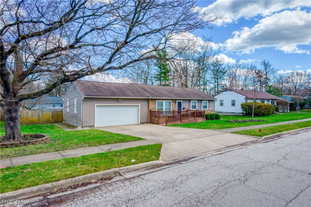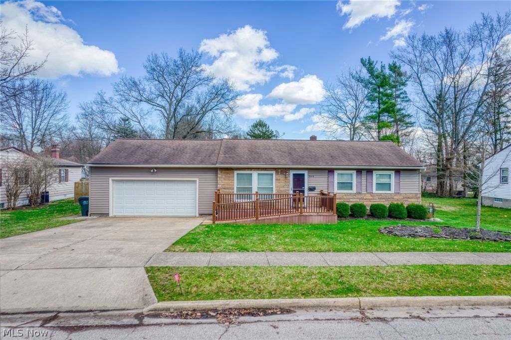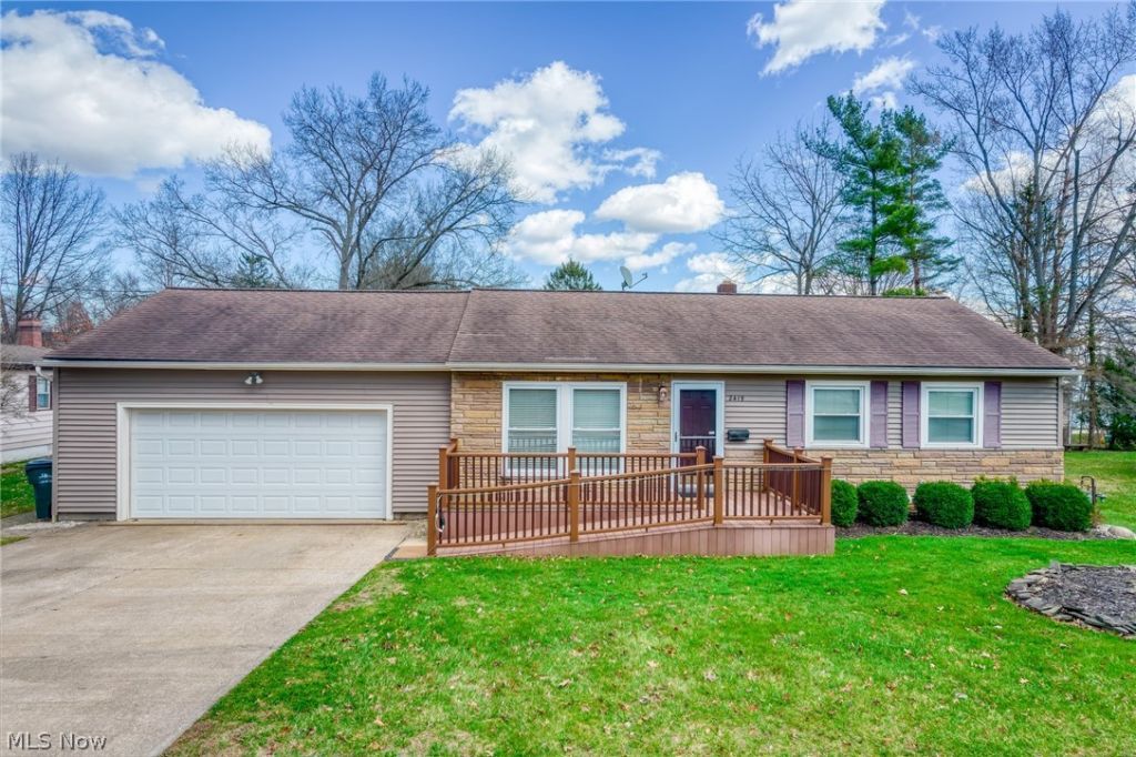 This tidy ranch home looks deceivingly small from the street. Even with the attractive stone facade and vinyl siding, you would never guess that four bedrooms, two full bathrooms and 1809 square feet are hiding inside. The same family has been taking excellent care of this home since the mid 1960s. The 756 square foot addition that they built in the 1970s added a bedroom, a second full bathroom with a walk-in shower and a beautiful great room with vaulted ceilings and antique beams. This space has sliding glass doors that lead to a deck and the private fenced in yard. It acts as a gathering space for holiday celebrations and everyday activities. The original portion of the home starts with a sunny living room (hardwood floors under that carpet). The kitchen is clean, neutral and sturdy with custom cabinets and newer appliances. A dining area is right next to the kitchen. Follow the hallway to three of the four bedrooms and a full bathroom. All of these bedrooms have wood floors and sizeable closets. The fourth bedroom is carpeted and has the coolest mid-century modern light fixtures. A side door from the kitchen leads to the two-car heated garage. A giant workbench and shelving mean there is a place for all of your tools. The basement was waterproofed in 2004 by Ohio State Waterproofing and includes an EZ Breathe ventilation system. This bright space offers loads of storage, a second work area and a utility sink. There is laundry hook-up here in the basement as well as in the second bathroom upstairs. This home is super solid and ready for its next chapter. Important dates: furnace 2021, some windows and sliding doors to deck replaced 2020, siding 2012, roof (total tear-off) 2012.