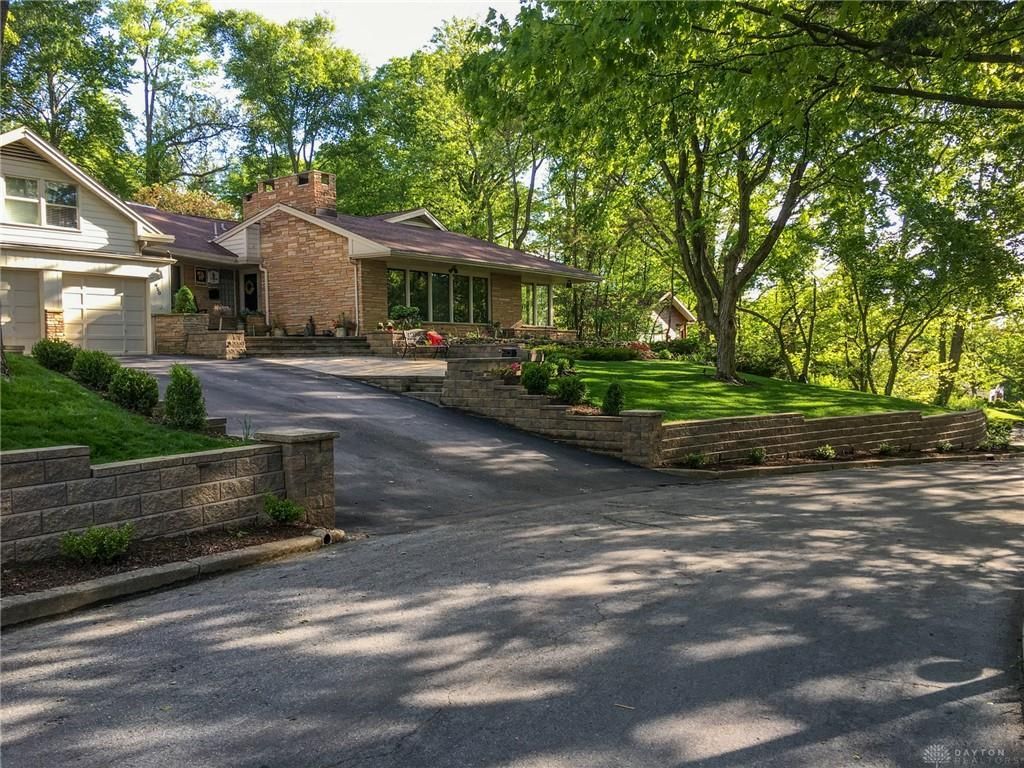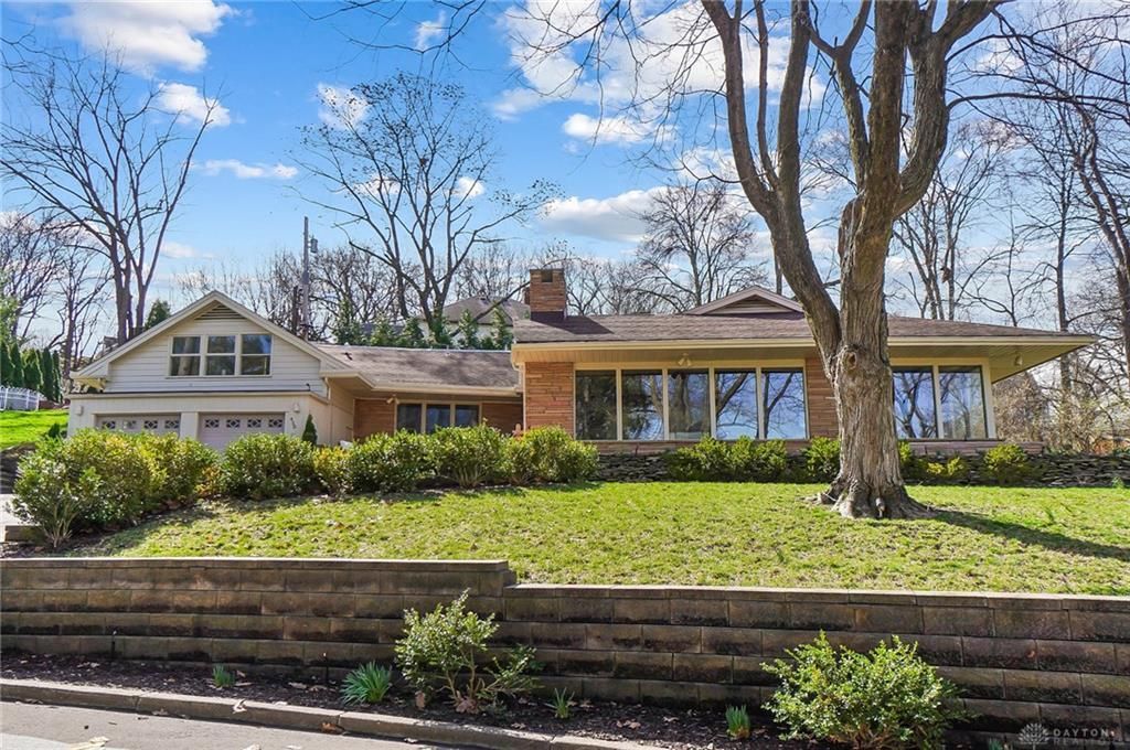 This meticulously maintained Oakwood beauty blends original mid-century character, modern updates, and a strong connection to nature. The sandstone exterior, wood beams, custom cabinetry, and a dramatic fireplace wall (also sandstone) are just some of the stunning mid-century details that make this home so special. The owners have thoughtfully updated the home over their 12 years of ownership, including renovations to all 3 bathrooms (2025), new carpet and hardwood flooring (2025), LED lighting (2025), fresh interior and exterior paint (2025), and extensive kitchen updates, including cabinetry (2025), sink (2025), and appliances (2022). The open-concept living and dining spaces feature a remote-controlled gas fireplace, built-in cabinetry, new hardwood floors, and a wall of floor-to-ceiling windows that frame breathtaking winter views of the downtown Dayton skyline. The updated kitchen offers white cabinetry, a pantry, two snack bars, and a breakfast area, and it opens to the family room, which features a gas fireplace with a quartz feature wall, a built-in storage bench, and backyard access. The well-designed main level also includes a laundry room, three bedrooms, and a full bath. The primary suite features a brand-new bathroom, a walk-in cedar closet, two dressing areas (with additional closets), and beautiful views. An adjacent office showcases the original built-in desk system. Upstairs, you will find two additional bedrooms, a rec room/lounge with built-in cabinetry, and a third full bath. Outside, enjoy a private backyard oasis with a two-tier patio, sandstone grill, smart irrigation, and landscape lighting front and back. Additional highlights: two-point radon mitigation, epoxy-coated garage floor, dual HVAC systems, enhanced insulation, 200-amp electrical service, and abundant storage. Minutes to schools, downtown Dayton, shopping, restaurants, and I-75. The big-ticket updates are already done; just move in and enjoy!