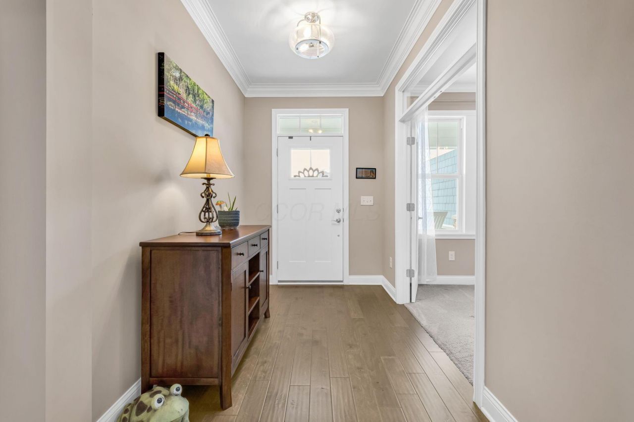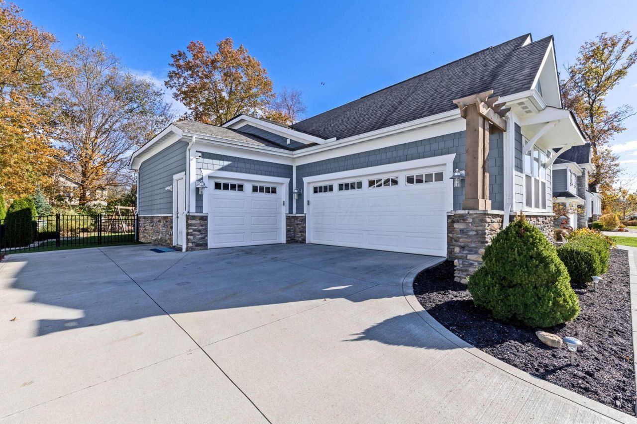 This beautifully designed ranch in The Glade at Highland Lakes features a well-intentioned split-bedroom floor plan that maximizes privacy, minimizes noise transfer, and creates a spacious shared living area ideal for multi-generational living or hosting guests. Offering 3 bedrooms, 2 baths, and a 3-car attached garage with an additional parking pad, this home welcomes you with inviting landscaping and a charming covered front porch. Inside, the open layout showcases a gourmet island kitchen with pendant lighting, KitchenAid stainless steel appliances including a gas cooktop with custom hood, a walk-in pantry, and abundant cabinetry, all overlooking the expansive 19'6'' x 18'8'' great room with a large picture window, framing views of the fenced backyard. The dining or morning room opens to a 13'6'' x 11'5'' three-season room, perfect for relaxation. The primary suite features a tray ceiling, a private bath with a large, seated shower, soaking tub, dual sinks, and an XL closet with convenient access to the laundry area. Additional highlights include a first-floor den, stamped concrete patio, property extending into a mature tree line, whole-house Generac generator, recessed lighting, solid shaker doors throughout, and a full basement with egress window and plumbed for a third full bath and kitchen/bar. Major mechanicals--including roof, windows, HVAC, water heater, and sump pump--are 7 years old, and an on-demand electric water system for the primary bath was added in 2020. Security system. Ideally situated near Walnut Creek Elementary, this home offers easy access to scenic, neighborhood walking paths and is just minutes from Polaris, the Tangers Outlet Mall, popular restaurants, grocery options, and medical facilities--making everyday living exceptionally convenient.