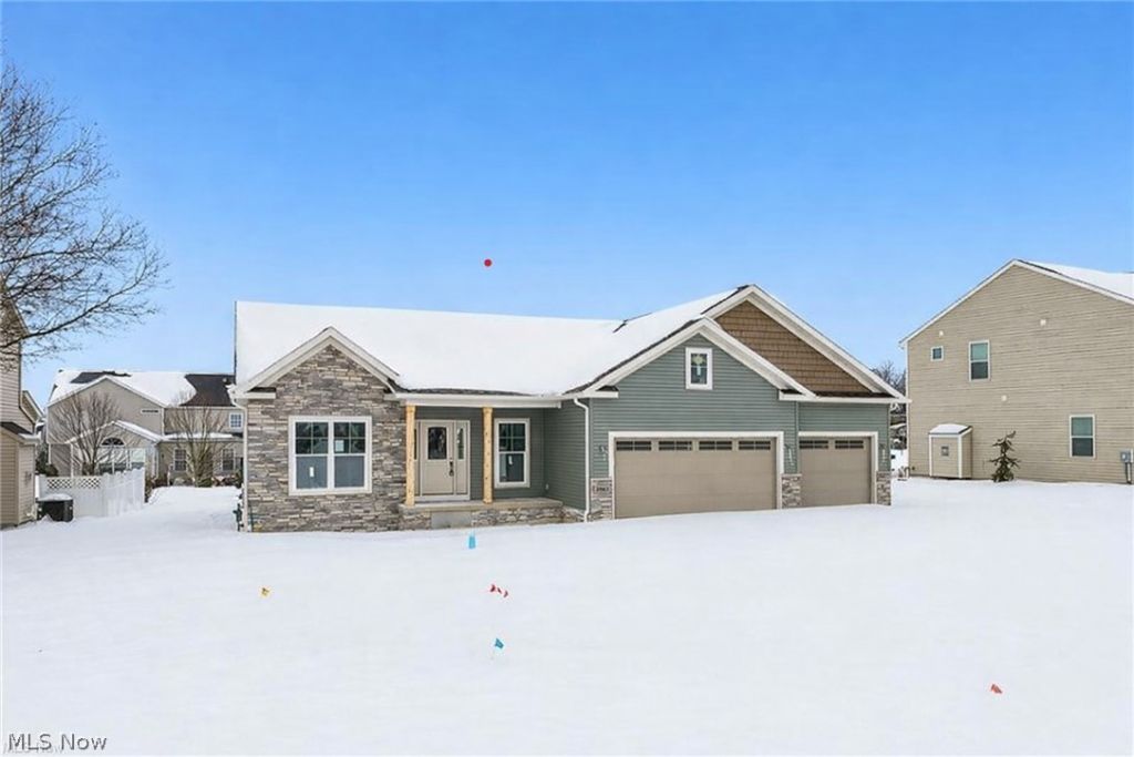 Quality new construction in Dover Highlands, Medina Township?crafted with the long-standing reputation of Wagler Homes and thoughtfully designed within the Henderson Homes Division. This 3-bedroom ranch blends time-tested craftsmanship with modern comfort, featuring a premium real wood trim package and a one-year builder warranty. Soaring ceilings and an open-concept layout showcase a coffered great room with gas fireplace, creating a warm, inviting focal point. The gourmet kitchen is designed to perform with quartz countertops, a command-center island, walk-in pantry, built-in trash cabinet, and seamless flow into the main living and dining areas?ideal for everyday living and entertaining. A first-floor laundry room with utility sink adds convenience. The private owner's suite offers a spacious walk-in closet and a well-appointed bath featuring a soaking tub and a floor-to-ceiling tiled, separate shower?your own retreat at the end of the day. The full basement includes high ceilings, poured concrete walls, steel beam construction, plumbing rough-in, and a waterproofing system, providing excellent potential for future finishing. The oversized 3-car garage is equipped with hot and cold water faucets and floor drains?built for function as well as storage. Additional highlights include energy-efficient Pella Low-E argon windows and quality materials throughout. Concrete driveway, sidewalk, final grading, and hydroseeding will be completed as weather permits. **A thoughtfully built home designed for lasting value and everyday living.**